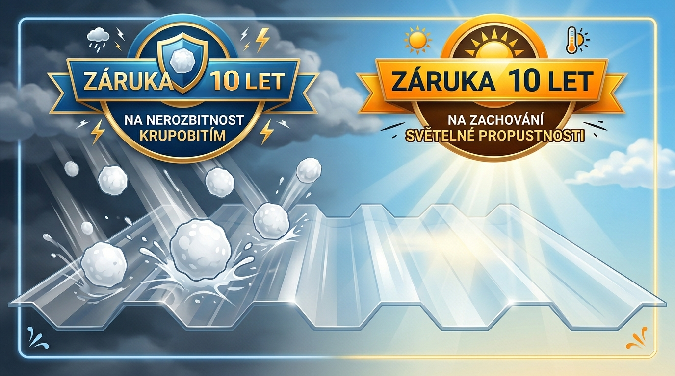 - 10 let na světelnou prostupnost - desky jsou opatřeny kvalitním oboustranným UV filtrem, díky kterému si zachovávají svou čirost a nekřehnou